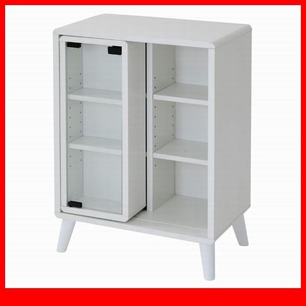 > ラック★新品/一人暮らしに寄り添う スライドラック/北欧風 コンパクト 幅50cm ガラス扉 飾り棚 本棚 背面化粧/ホワイト/a3