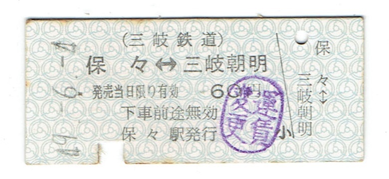 - 《硬券 乗車券》三岐鉄道 保々⇔三岐朝明 昭和49年