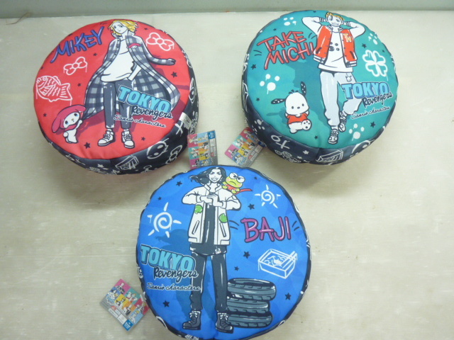 - r513a 未使用品 東京リベンジャーズ&サンリオキャラクター ラウンドクッション 3点まとめ サンリオコラボ キティ*シナモンロール等