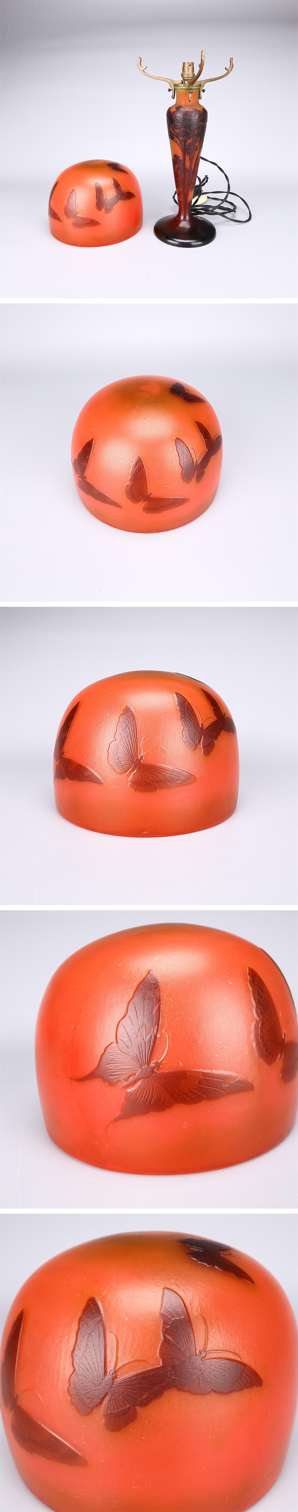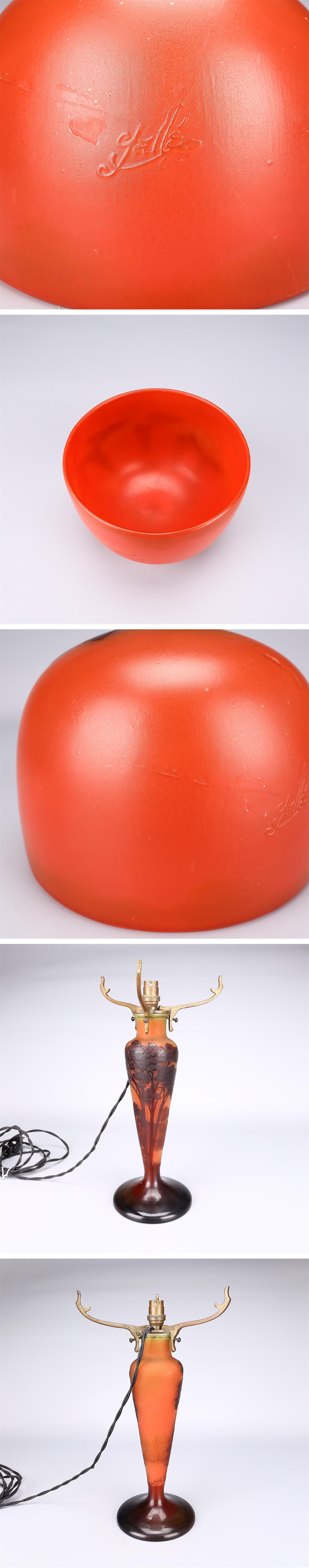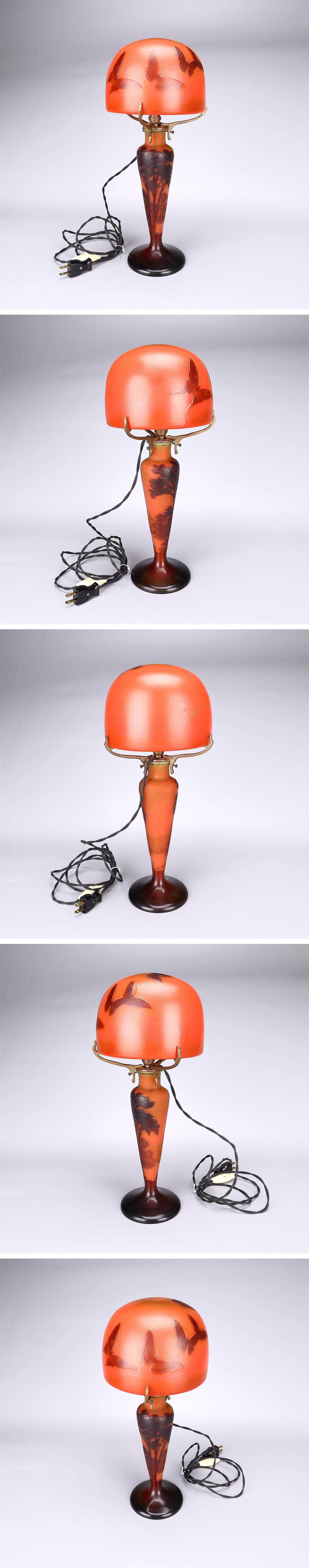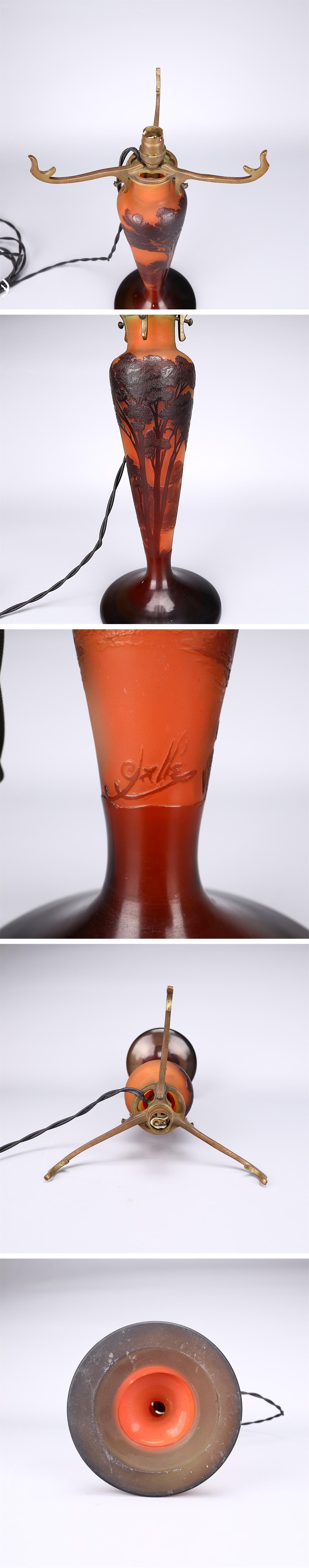 > 【吉】PC786 Emile Galle 【エミール・ガレ】 被せガラス 山水紋 スタンドライト 照明/本物保証 傘のなおし跡ありK!