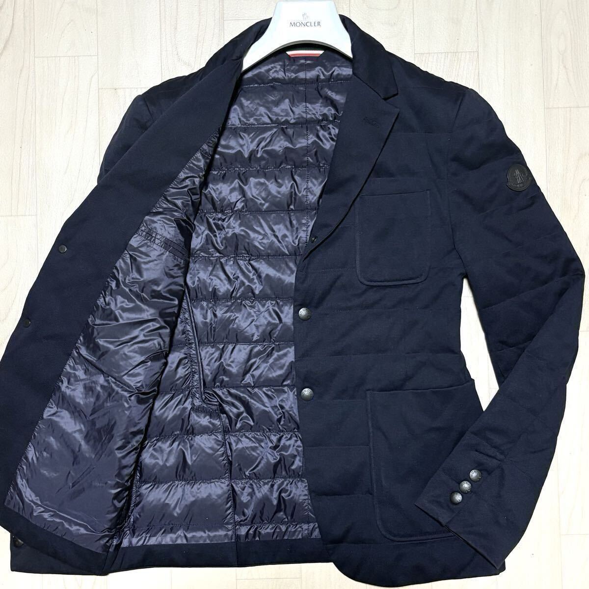 > 美品/Lサイズ相当◎ MONCLER モンクレール GIACCA ダウンジャケット テーラード コート レザーワッペン DISTタグ ネイビー メンズ 2