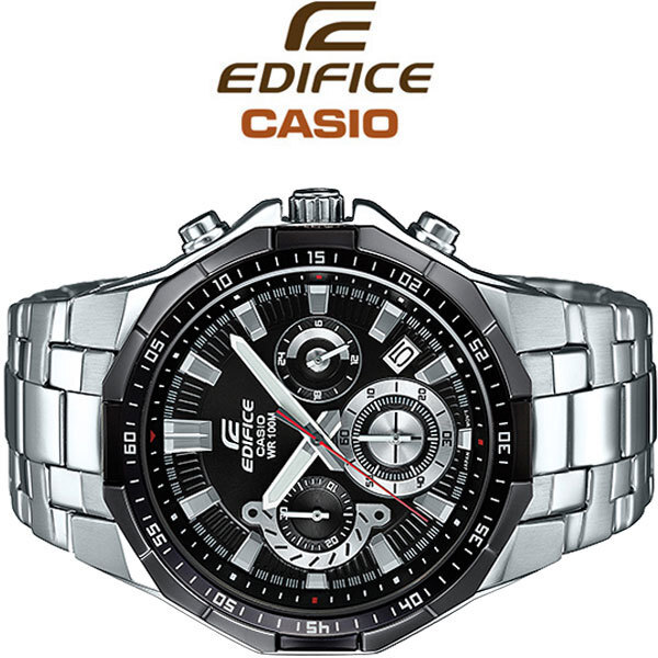 > 最後1本 カシオEDIFICE 入手不可能 新品1円 欧米モデル100m防水 クロノグラフ ブラックフェイス 未使用 CASIOメンズ 腕時計 エディフィス