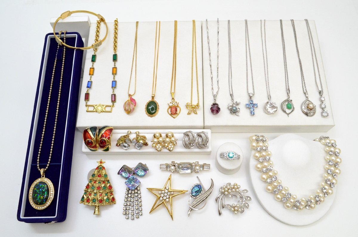 > 豪華 アクセサリー まとめ ネックレス ブローチ 指輪 イヤリング 他 ゴールドカラー シルバーカラー 色石調 ヴィンテージ調 刻印含む [fui]