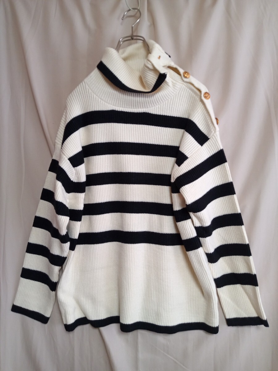 - 3003 ★★ 新品・Rough Rare ボーダー長袖ニット 白×黒 サイズF