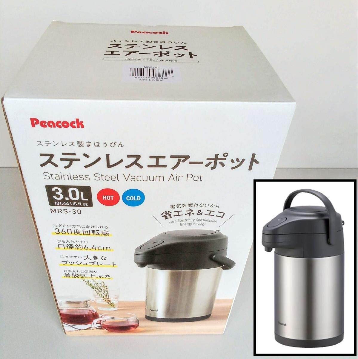 - [未使用品] Peacock ピーコック ステンレスエアーポット まほうびん MRS-30 3.0L 保温 保冷 魔法瓶 (2) [西那須野店]