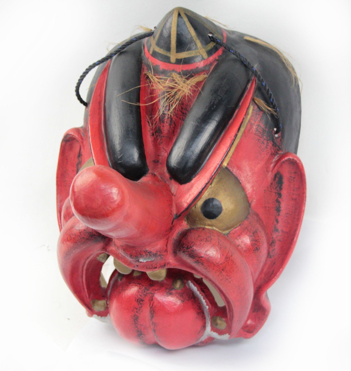 - 影山涼石 いわき天狗 イワキテング 鼻高天狗 お面 身體健固 家内安全 交通安全 厄除け 郷土玩具 伝統工芸品 面飾り 石膏 34cm×46cm