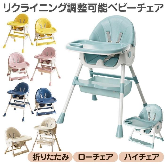 > ベビーチェア 折りたたみ ハイローチェア 持ち運び 多機能 ダイニング ベビー テーブル付き 安全ベルト 出産祝い ギフト