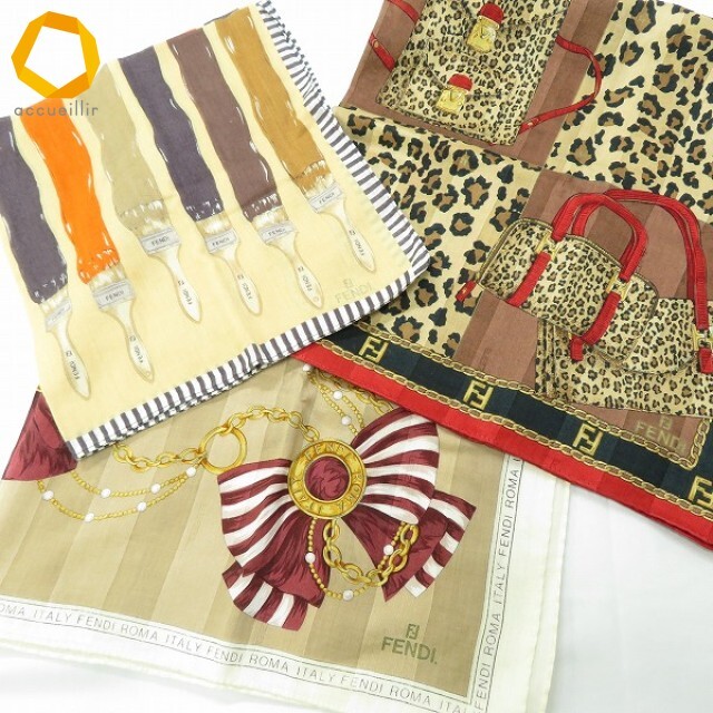 - #ae フェンディ FENDI ハンカチ 3枚セット マルチ 総柄 ペンキ柄 リボン柄 ヒョウ柄 レディース [972997] k01
