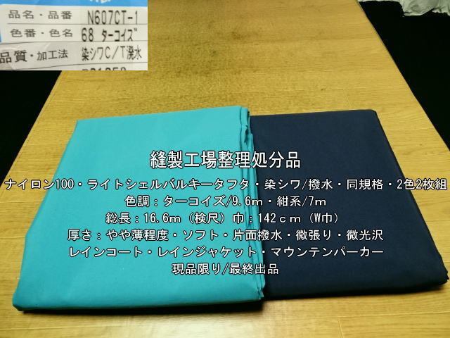 - ナイロン100ライトシェルバルキータフタ 染シワ/撥水2色2枚16.6m