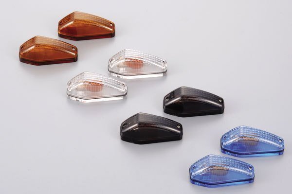 | 商品内容 | ■POSH社オリジナルデザインの貼り付けタイプウインカー。独自のレンズカットにより充分な光量を得ています。取り付けは貼るだけと、いたって簡単です! ■サイズ:全長70mm、全幅31mm、高さ26mm ■カワサキ車にも取り付け可能な変換コード付 ■12v15w ウェッジ球付 ■2個セット ※15wクロームコーティングバルブは使用しないでください。 ※車検対応(取り付け位置や向きなどで対応できない場合もあります。) |