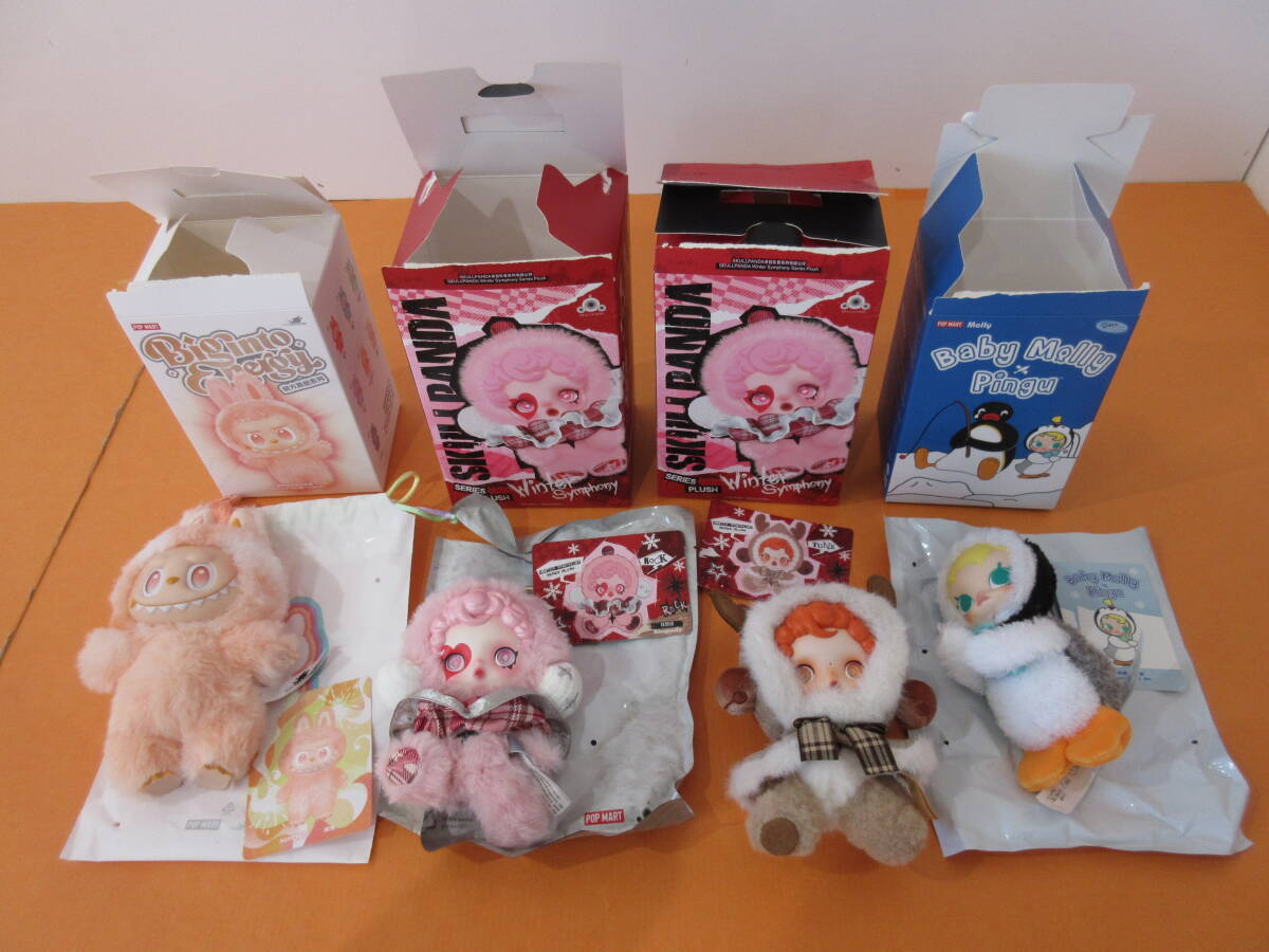 - 103)POP MART ポップマート ぬいぐるみ 4体 まとめ Baby Molly×PINGU/ラブブ HAPPINESS/スカルパンダ トナカイ/ロック