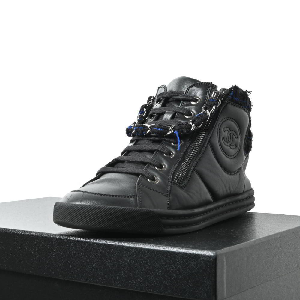 > CHANEL G31316ココマーク レザー ハイカットスニーカー チェーン付き 36 ブラック シャネル KL4BABHS97