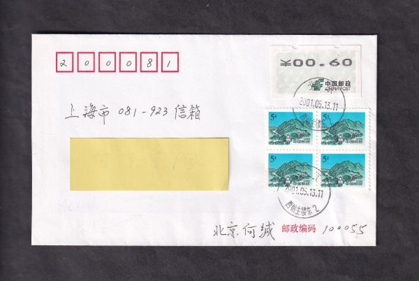 - 自動化切手 印字切手 中国 00.60元 フラマ 切手加貼り 実逓便