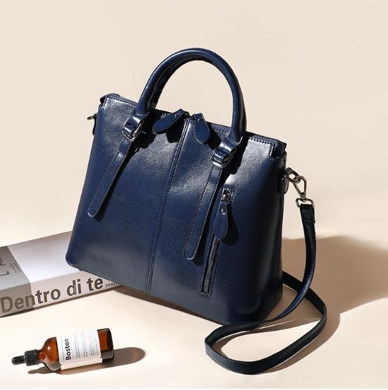 - 高品質 牛皮 ハンドバッグ ショルダーバッグ ブルー レディース 女性 【n411】