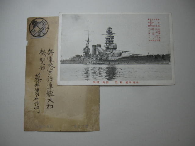 - ★ 呉軍港在泊 軍艦大和からのはがき ★ 帝国軍艦 長門 陸奥 のはがき ★ 2枚