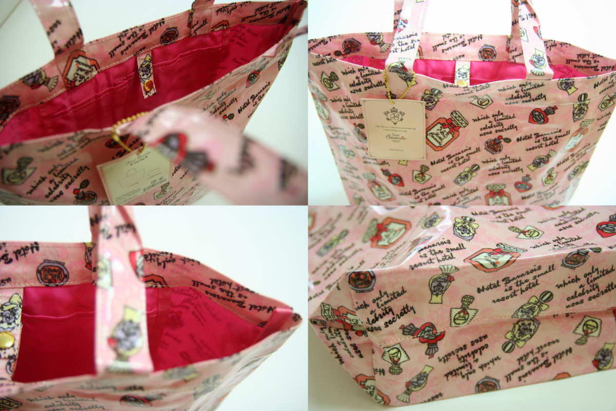 > 送料無料◆超お得な2セット【Hotel Bavarois】(ホテル ババロア)◆光沢感◆撥水性◆香水瓶柄◆トートバッグ&ポーチセット(ピンク)