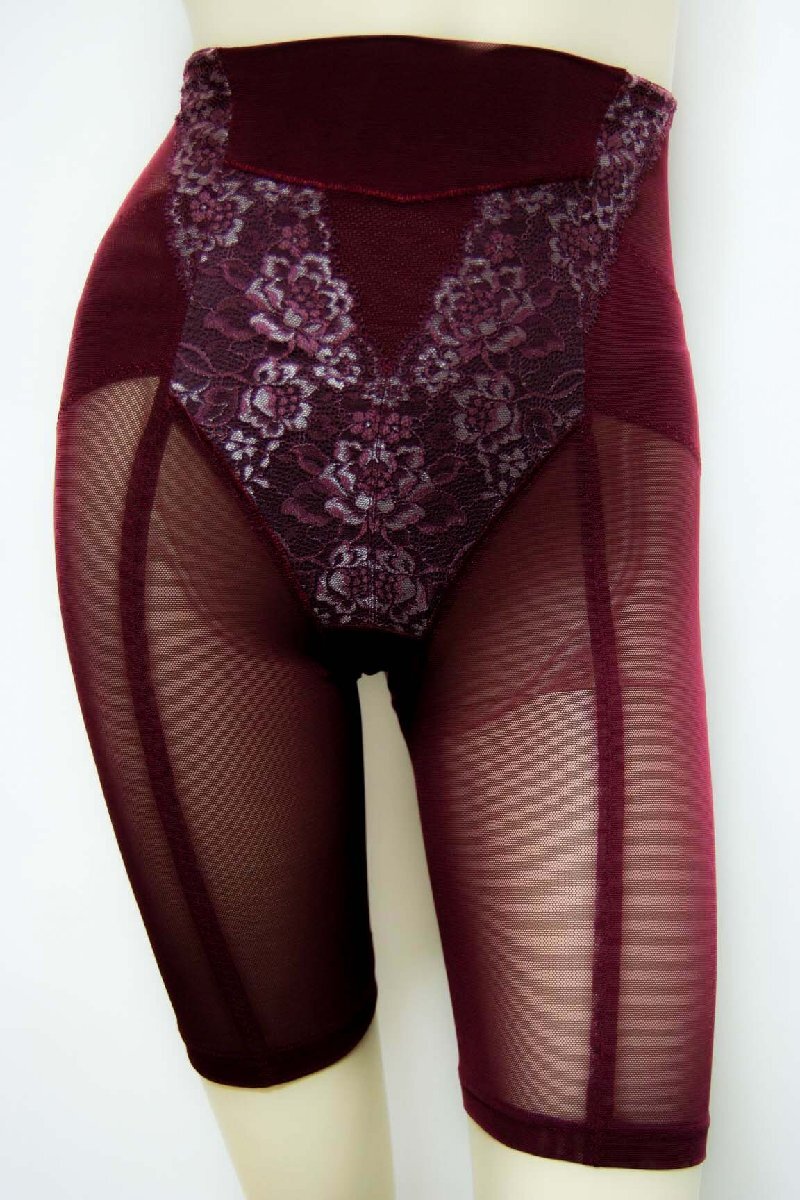 > 送料無料【安心と信頼】日本製◆高級補正◆お腹押さえ&押引き締め◆薄軽素材◆しっかりサポート◆ハイウエスト&ロングガードル(L/ワイン)
