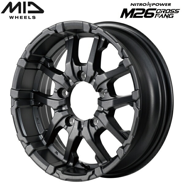 - MID NITRO POWER M26 CROSS FANG 4本Set バレルブラック/ドリルド 5.5J-16インチ 5穴/PCD139.7+20