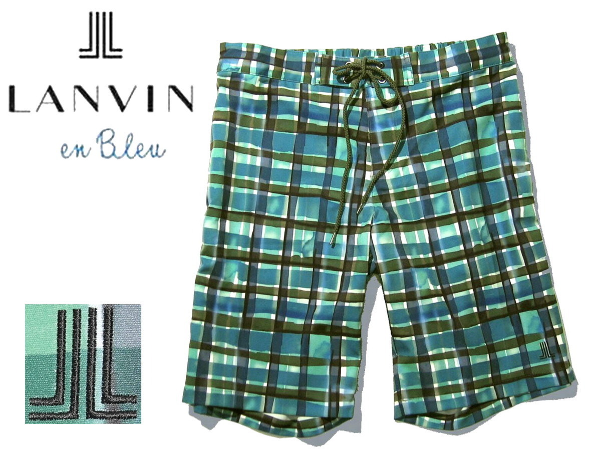 > 新品 L or XL 定価¥9,900 LANVIN en Bleu ランバンオンブルー 日本製 サーフパンツ 海水パンツ 海パン スイミング 水着 MENS 緑 チェック