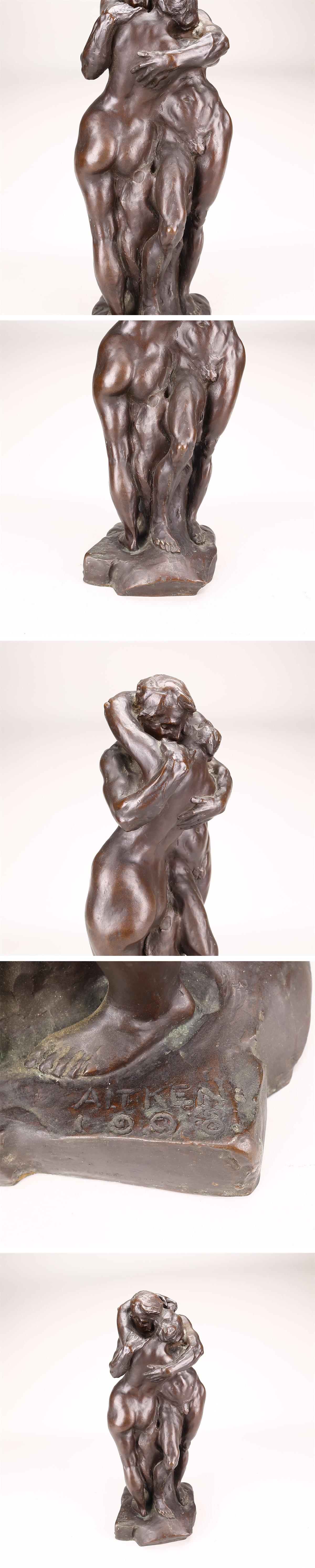 > 【吉】DA832 西洋アンティーク 1908年 【AITKEN】 銅製 ブロンズ 【愛してる】 男女立像 置物 高52㎝ 重11.9Kg/美品G!