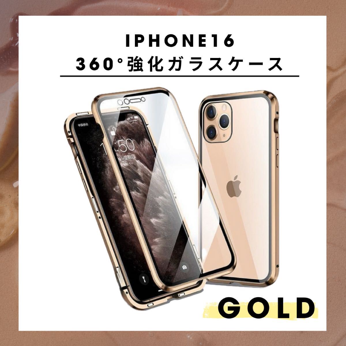 > iPhone16 360°全面保護 強化ガラス ゴールド 1831 新品 ケース