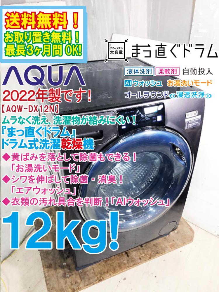 - 送料無料★2022年製★極上超美品 中古★AQUA 12kg「まっ直ぐドラム」黄ばみもキレイに除菌!ドラム式洗濯乾燥機【AQW-DX12N-K】FUOZ
