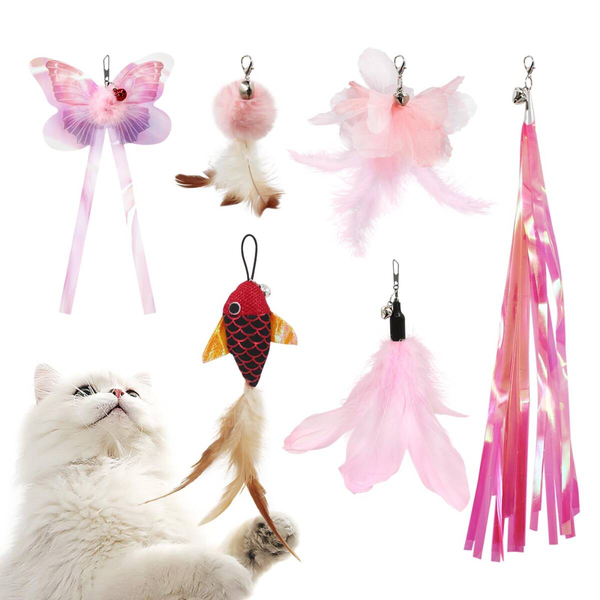 - 【数量限定】SONGWAY猫おもちゃ ねこじゃらし羽 チョウチョウ 赤い魚交換用
