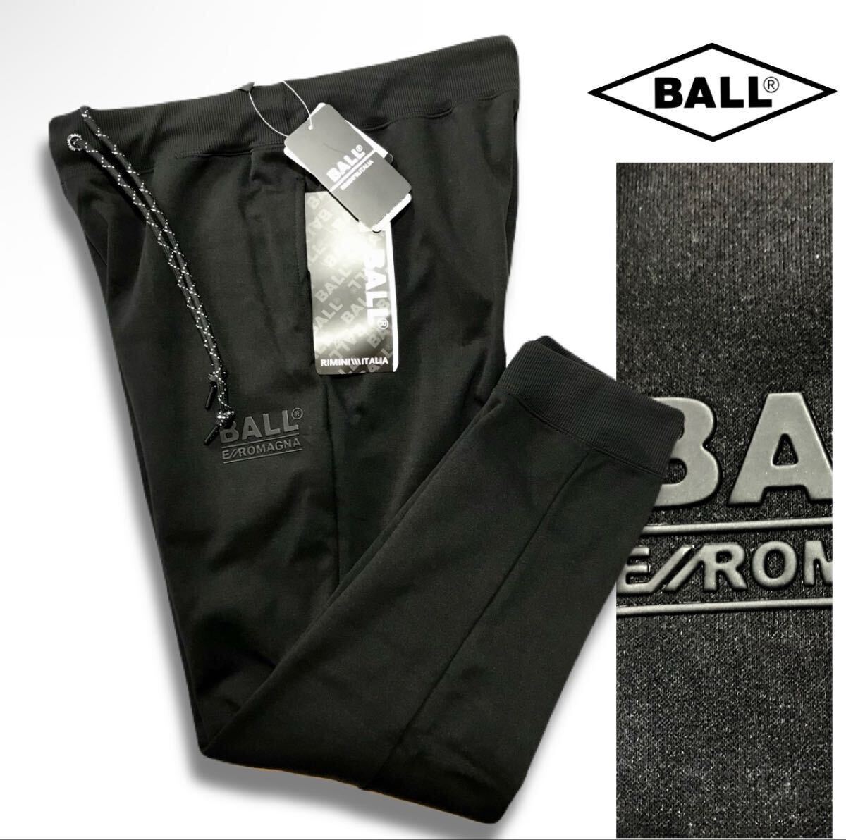 - 新品【メンズL】黒 BALL ボール ゴルフにオススメイタリア発ブランド 防寒 保温 裏フリース 裏起毛 ロゴ スウェット ジョガーパンツ