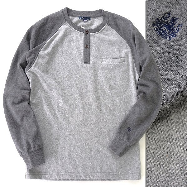 > 新品 アクアスキュータム 裏起毛 ヘンリーネック スウェット プルオーバー M 灰 濃灰 【I42774】 Aquascutum LONDON 秋冬 メンズ ラグラン