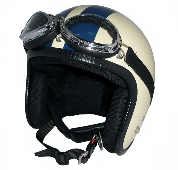 > ゴーグル付スモールジェット(アイボリ/ネイビ) SG公認 全排気量可 調整スポンジ付属 内装を外して洗える!