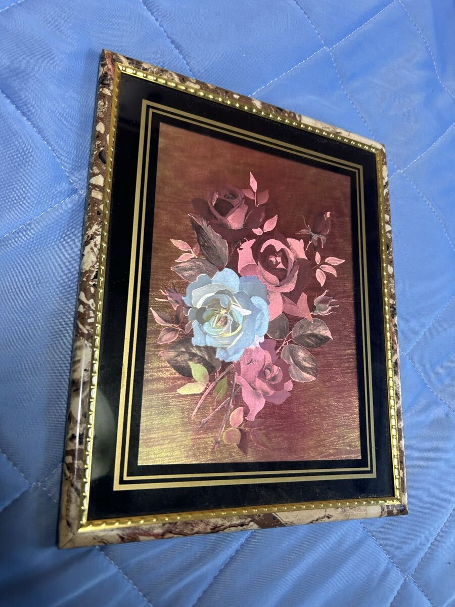 - キラキラ薔薇額縁絵画インテリアバラ花フラワー美術アート綺麗飾りおしゃれ希少