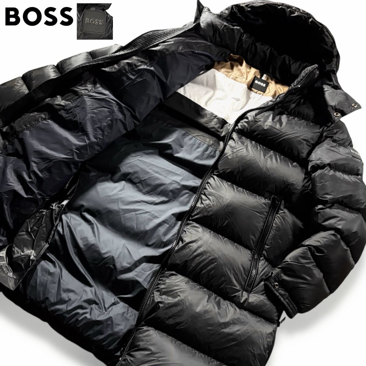 > 未使用級/XLサイズ●肉厚!! 現行タグ HUGO BOSS ヒューゴボス ダウンコート ジャケット アウター 肩ロゴワッペン 裏地BOSSカラー 大谷翔平