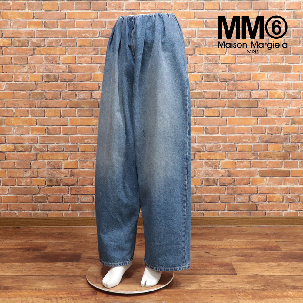 - 1円/MM6 Maison Margiela/38サイズ/ワイドデニムパンツ S52KA0514 イタリア製 ギャザー ジーンズ マルジェラ 新品/青/ブルー/mz205/