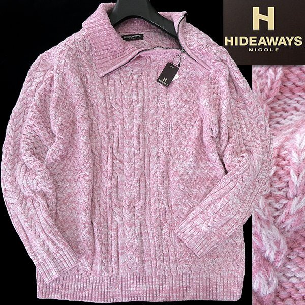 > 新品 HIDEAWAYS ニコル 7G ケーブル タートルネック ニット 50(LL) ピンク 【I58138】 NICOLE 秋冬 メンズ セーター バルキー カジュアル
