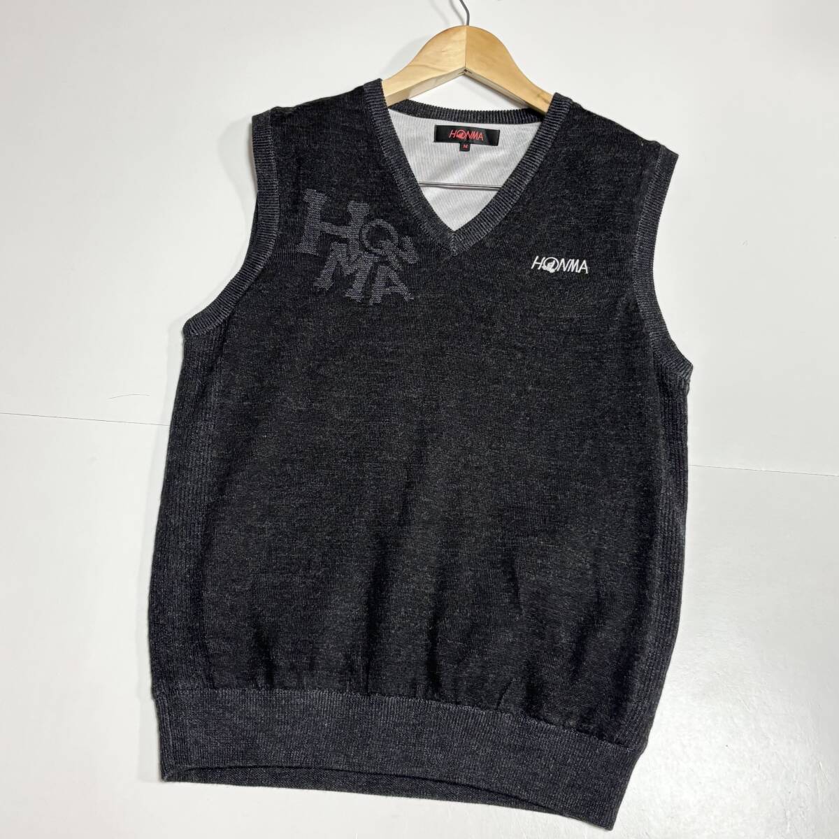 > メンズ 本間ゴルフ HONMA GOLF 裏地付き チャコール・黒系 ウールミックス ベスト ゴルフに! サイズM ③