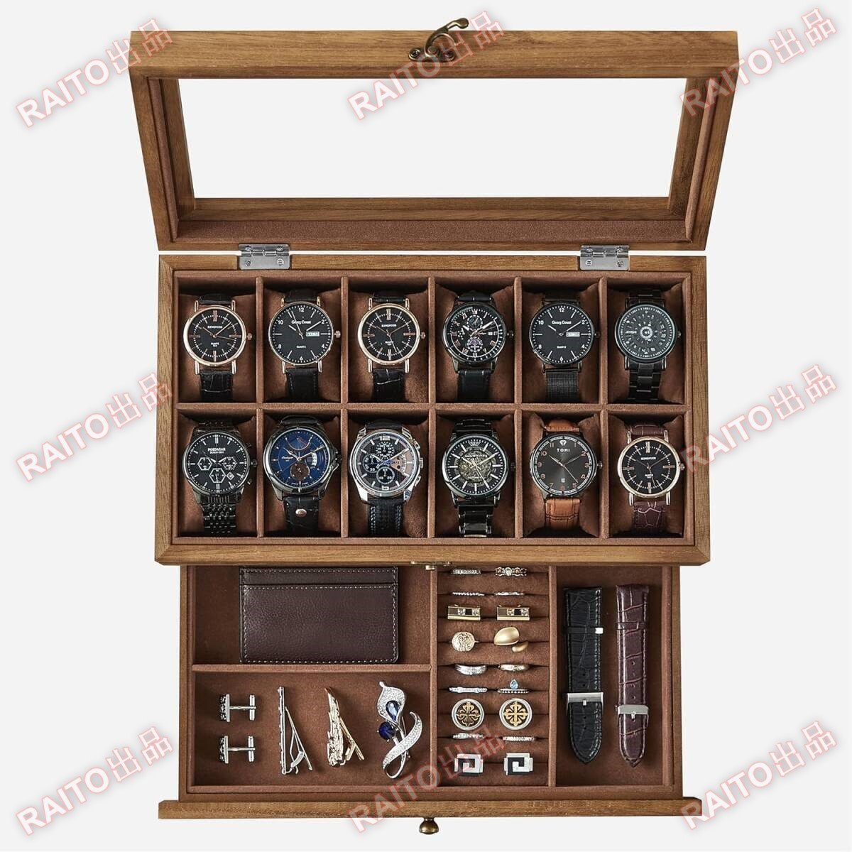 - 腕時計収納 コレクションケース ジュエリー ウォッチボックス 時計ケース アクセサリ保管 12本 木製 引き出し 2段式 bhw013