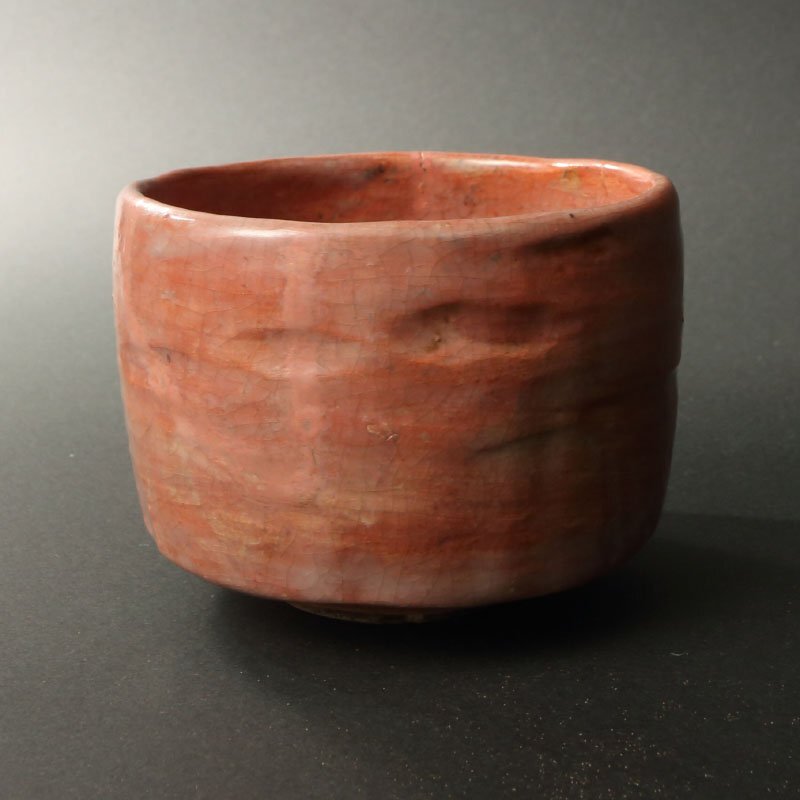 - 委託HK◇樂了入 赤楽茶碗 共箱(茶道具 陶磁器 陶芸 京焼 楽焼 赤楽 赤茶碗 楽茶碗 樂印 千家十職 抹茶碗 濃茶 茶事 茶席 茶の湯 鑑賞 )