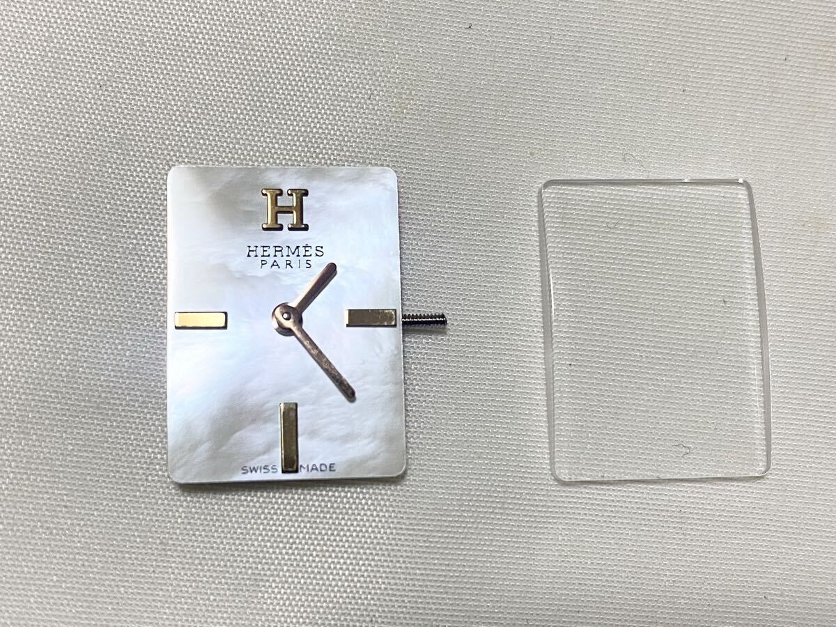 > 12D217 HERMES エルメス シェル文字盤 Hロゴ クォーツ ムーブメント 風防 ガラス 部品 パーツ ジャンク