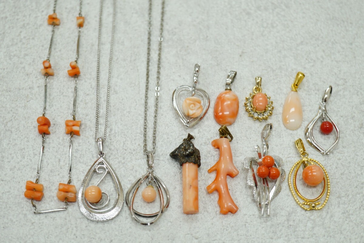 > C1221 本珊瑚 赤珊瑚 ネックレス ペンダント 12点セット ヴィンテージ アクセサリー 大量 まとめて おまとめ コーラル サンゴ SILVER含む