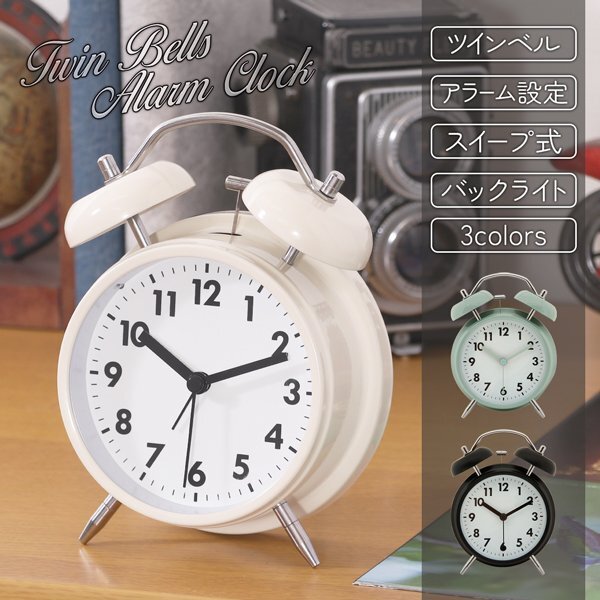 - 目覚まし時計 アナログ 置き 卓上 おしゃれ ベル 卓上 連続秒針 レトロ 小型 プレゼント 送料無料 7M◇ ベル置時計:アイボリー