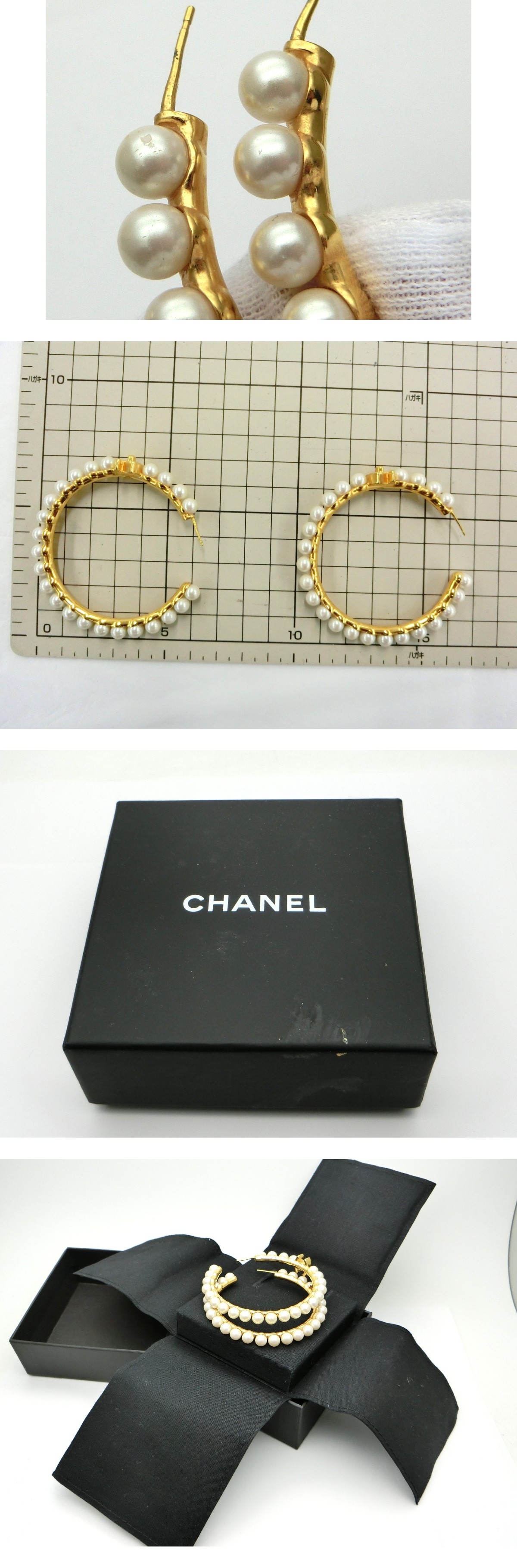 - CHANEL B20A フェイクパール ココマーク フープ ゴールド 箱付き ピアス アクセサリー 装飾品 シャネル 1円~ N0619