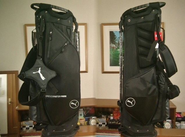 - 希少!未使用 PUMA プーマ アスリート向け ラウンド取っ手付 合繊素材 黒白 スタンドバッグ