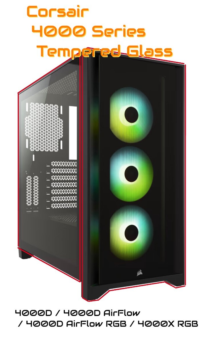 > 【千円~】Corsair 4000シリーズ用 純正強化ガラス フロント・サイド / 4000D・4000D AirFlow・4000D AirFlow RGB・4000X RGB