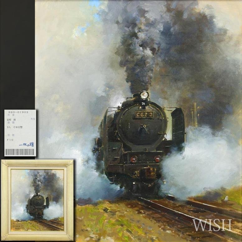 - 【真作】【WISH】吉村清「SL C62型」油彩 10号 1993年作 一枚の絵取扱 ◆重厚な姿で迫る蒸気機関車 〇大洋会委員 県展評議員 #26023142