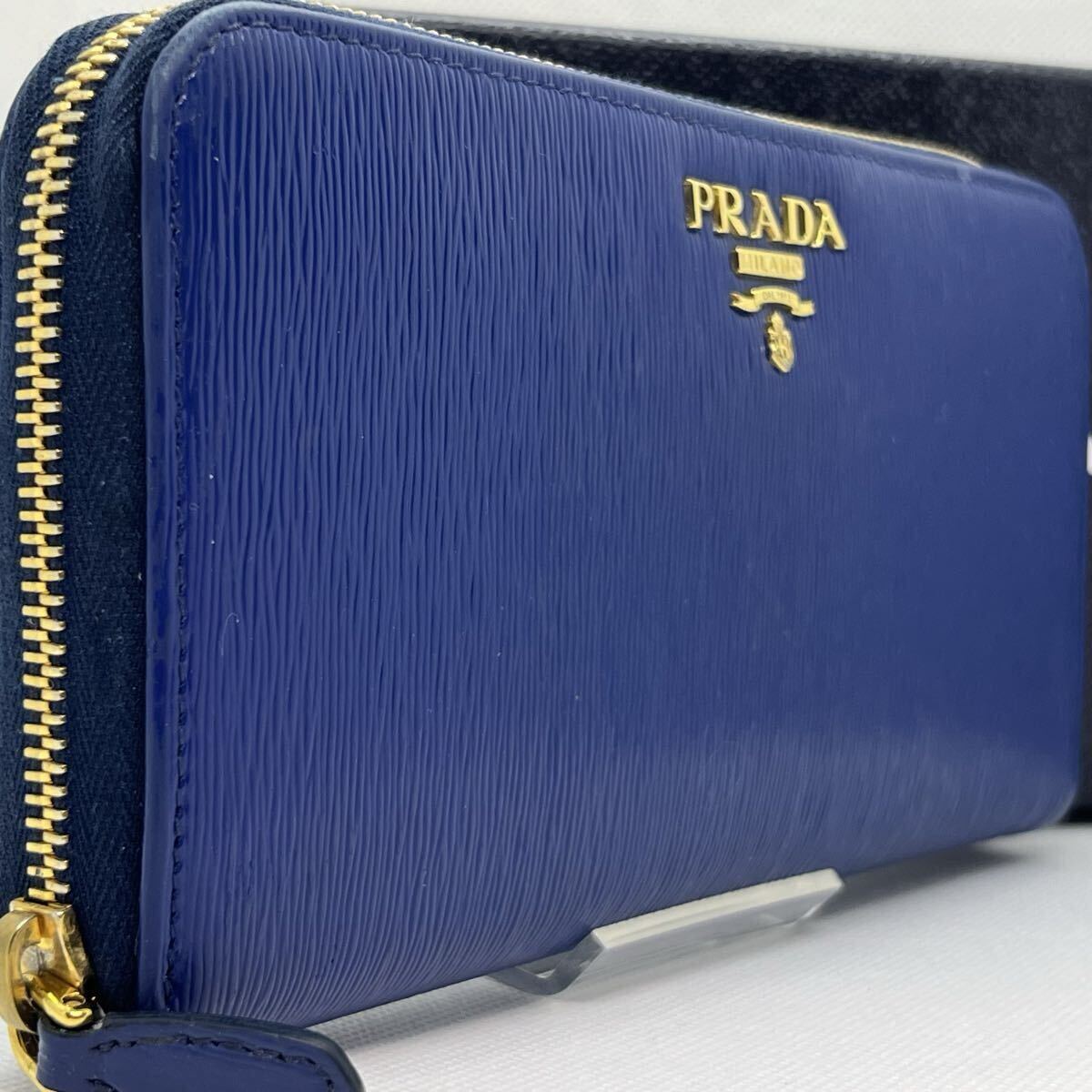> RFID搭載/極美品■ プラダ PRADA 長財布 ラウンドファスナー ヴィッテロムーヴ 金ロゴ レザー 本革 ネイビー 紺 メンズ ビジネス 小銭入れ