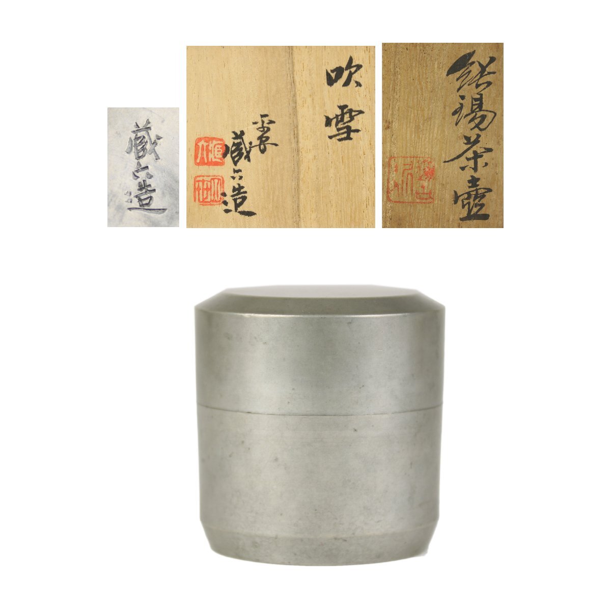 四世 秦 蔵六 造 吹雪 純錫 茶壺 共箱 在銘 重量371g