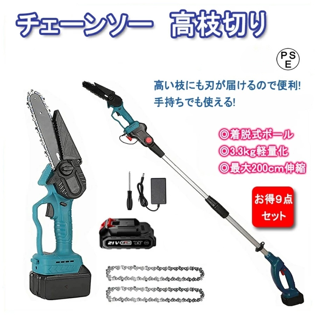 - 1円 高枝 チェーンソー 充電式 高枝切り電動チェーンソー 130-200cm 電動枝切り 高枝ノコギリ ハンディチェーンソー 両用 バッテリー*1