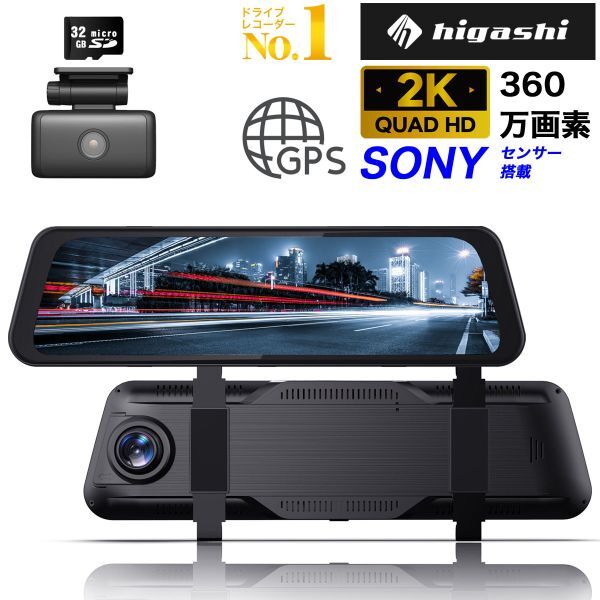 - 中古美品 ドライブレコーダー ミラー型 前後カメラ 高画質 2K 360万画素 SONY センサー デジタルインナーミラー GPS 型番 Hm-030 1