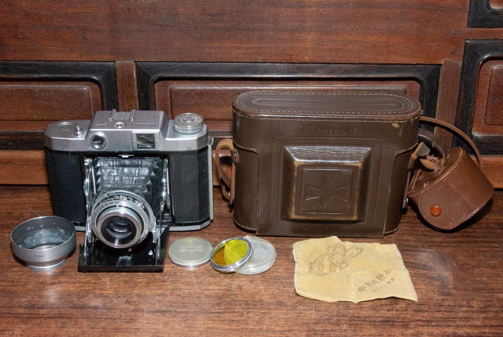 - マミヤ MAMIYA-6 蛇腹カメラ フード・フィルター・ケース付 SETAGAYA KOKI SEKOR T. 1:3.5 f=7.5cm