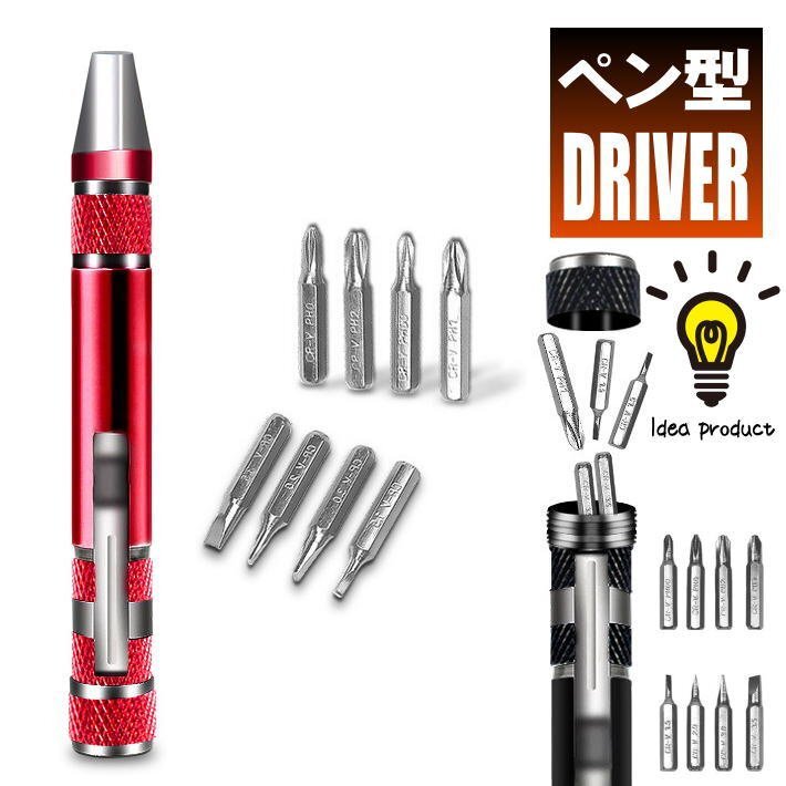 - 8bits ペン型 ドライバー 精密ドライバー ドライバーセット7987598 工具 DIY プラス マイナス 8in1 レッド 新品 1円 スタート